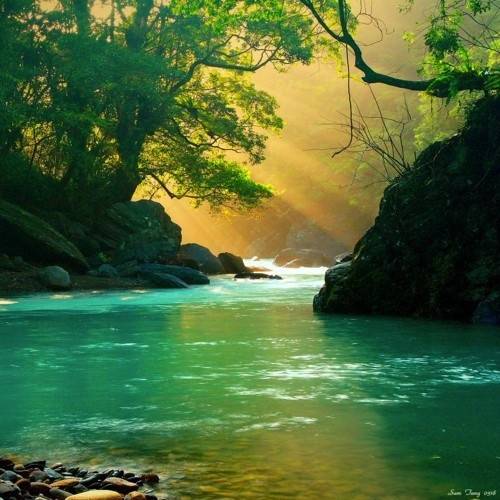 日出林间 ,清泉潺潺,那边就是世外桃源,炊烟袅袅,与世无争
